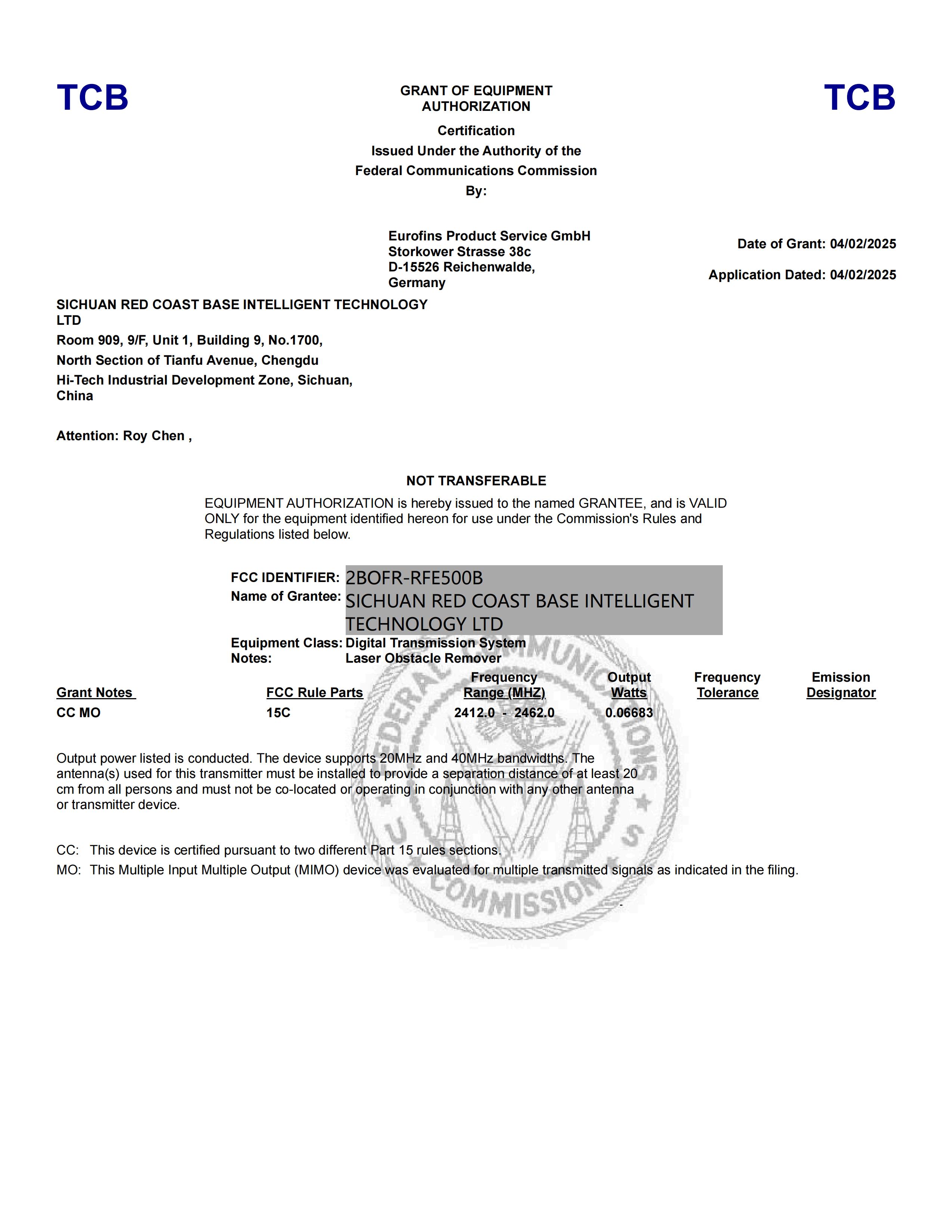 RedCoast Laser ha obtenido la certificación FCC
